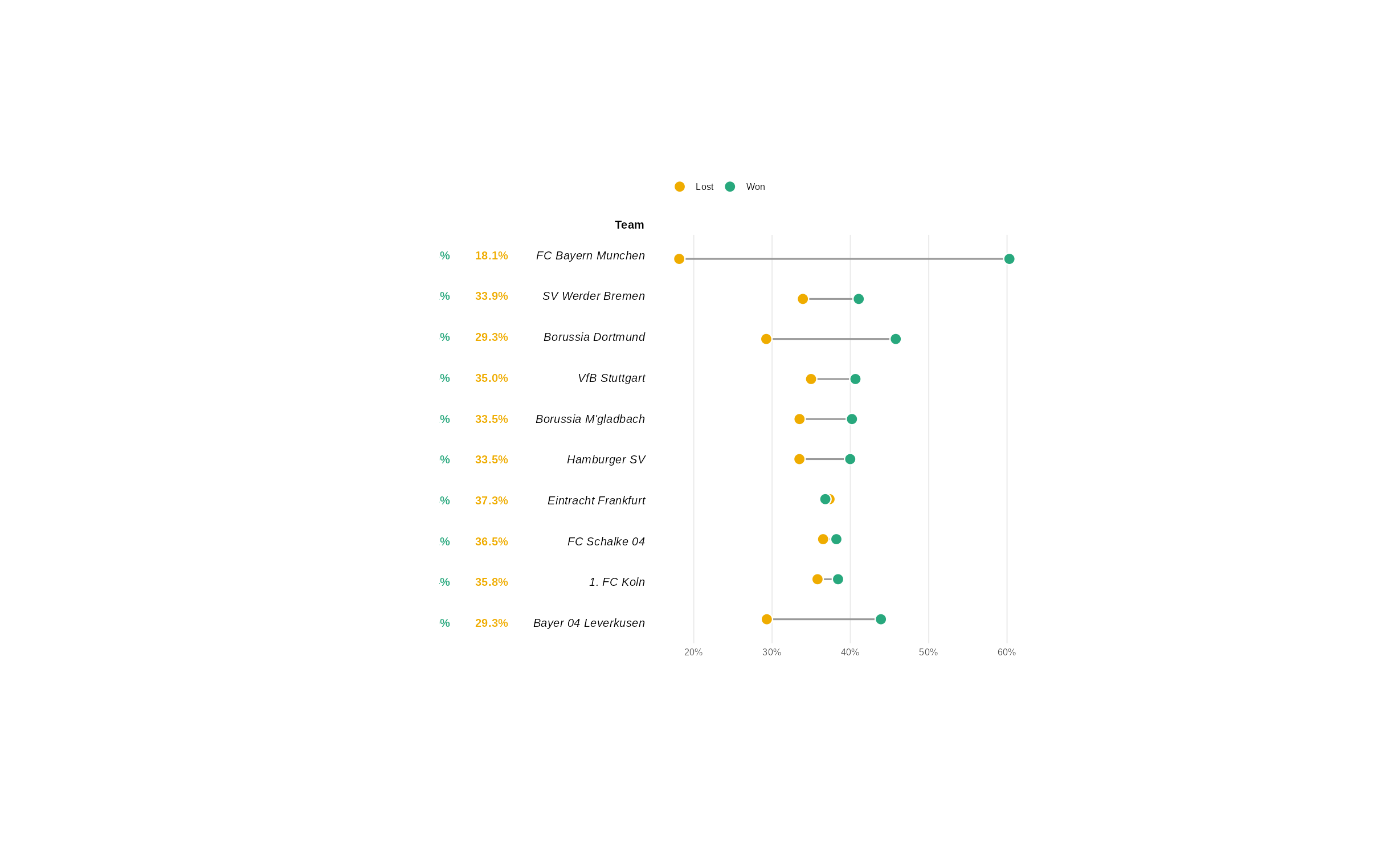 pal <- c(lost = "#EFAC00", won = "#28A87D")